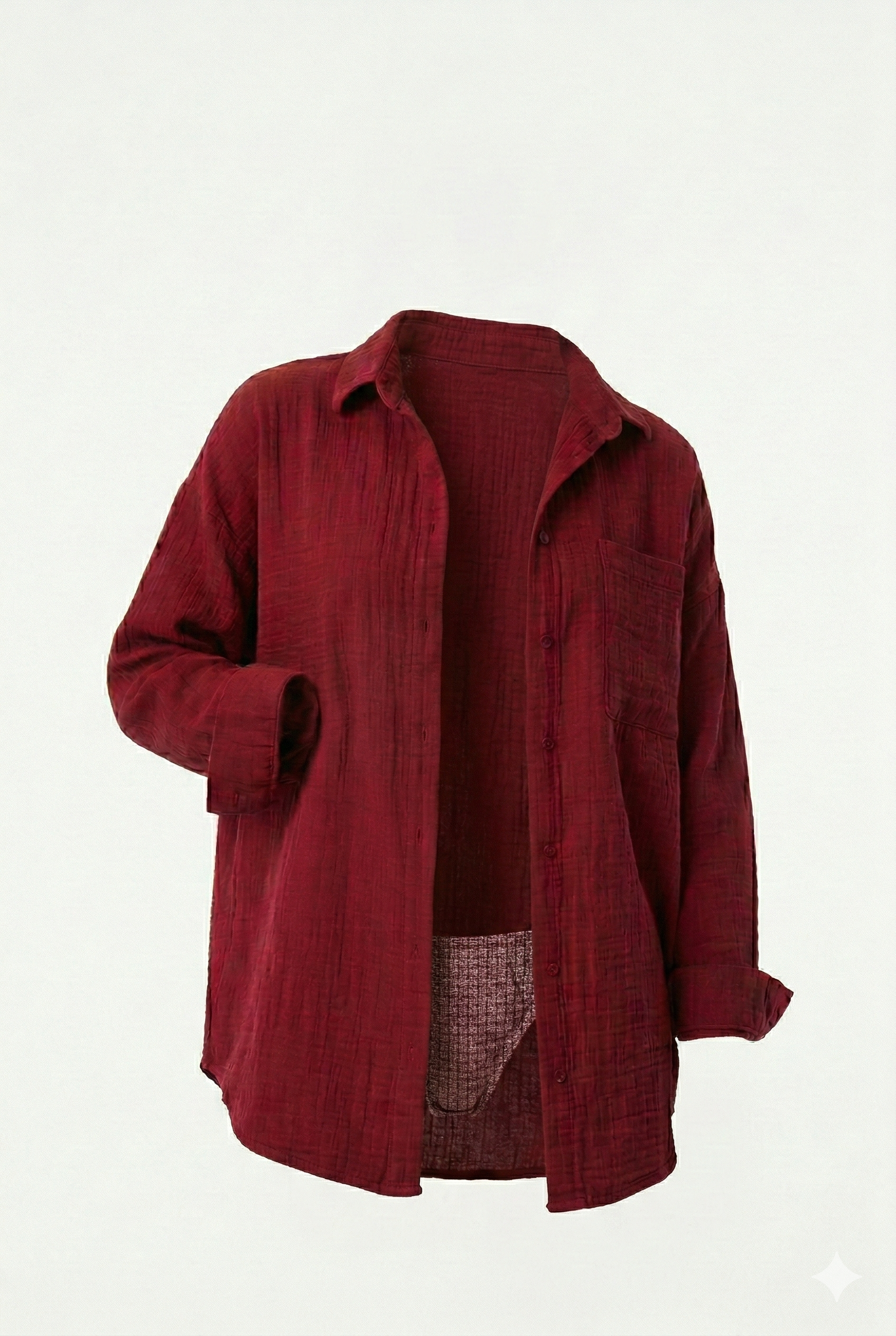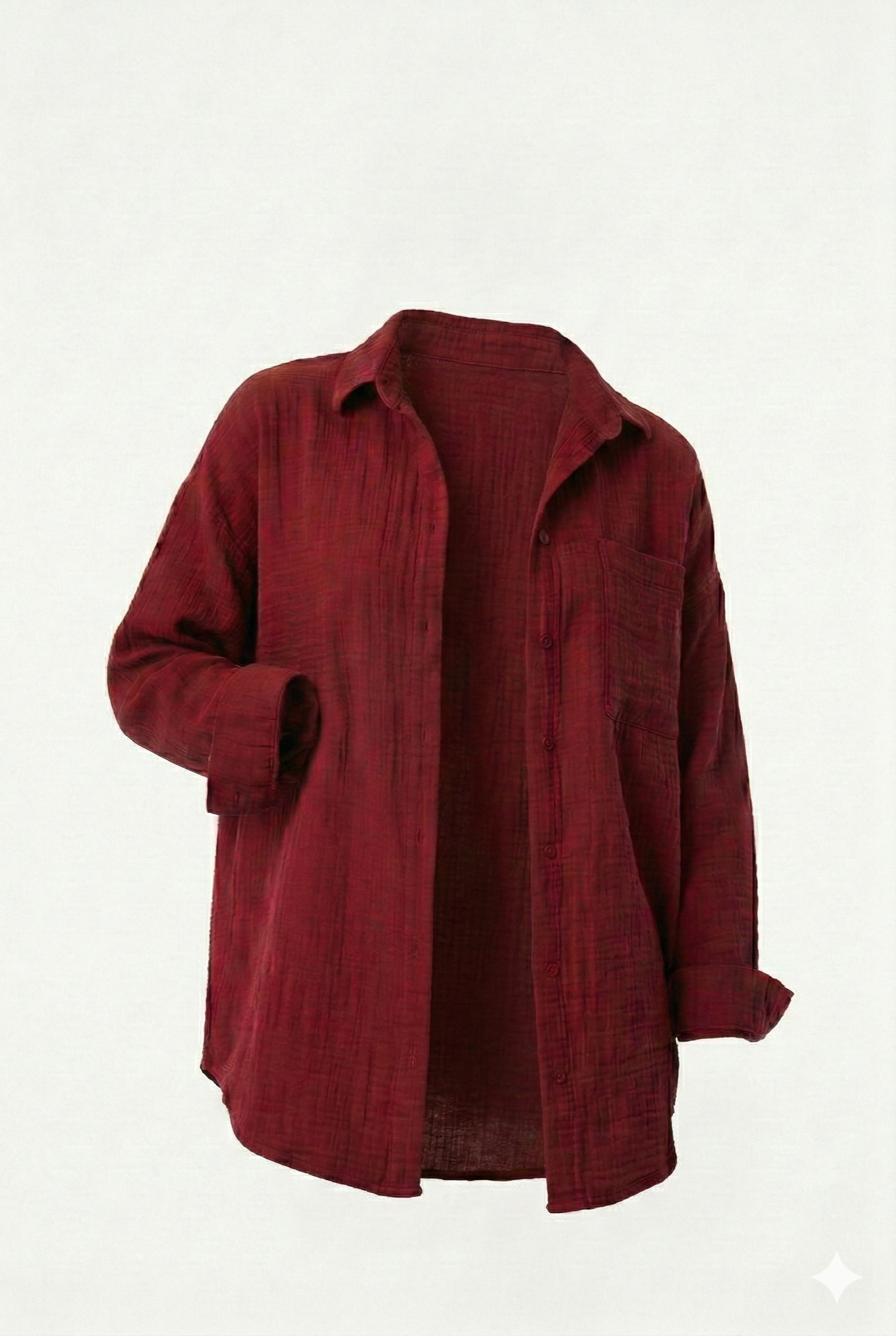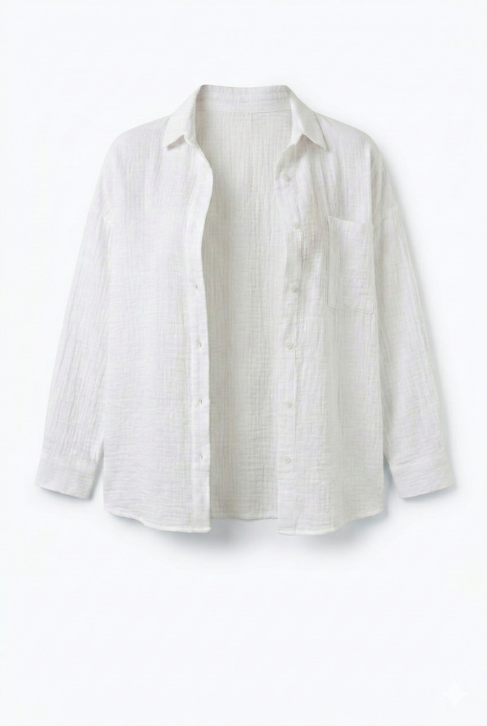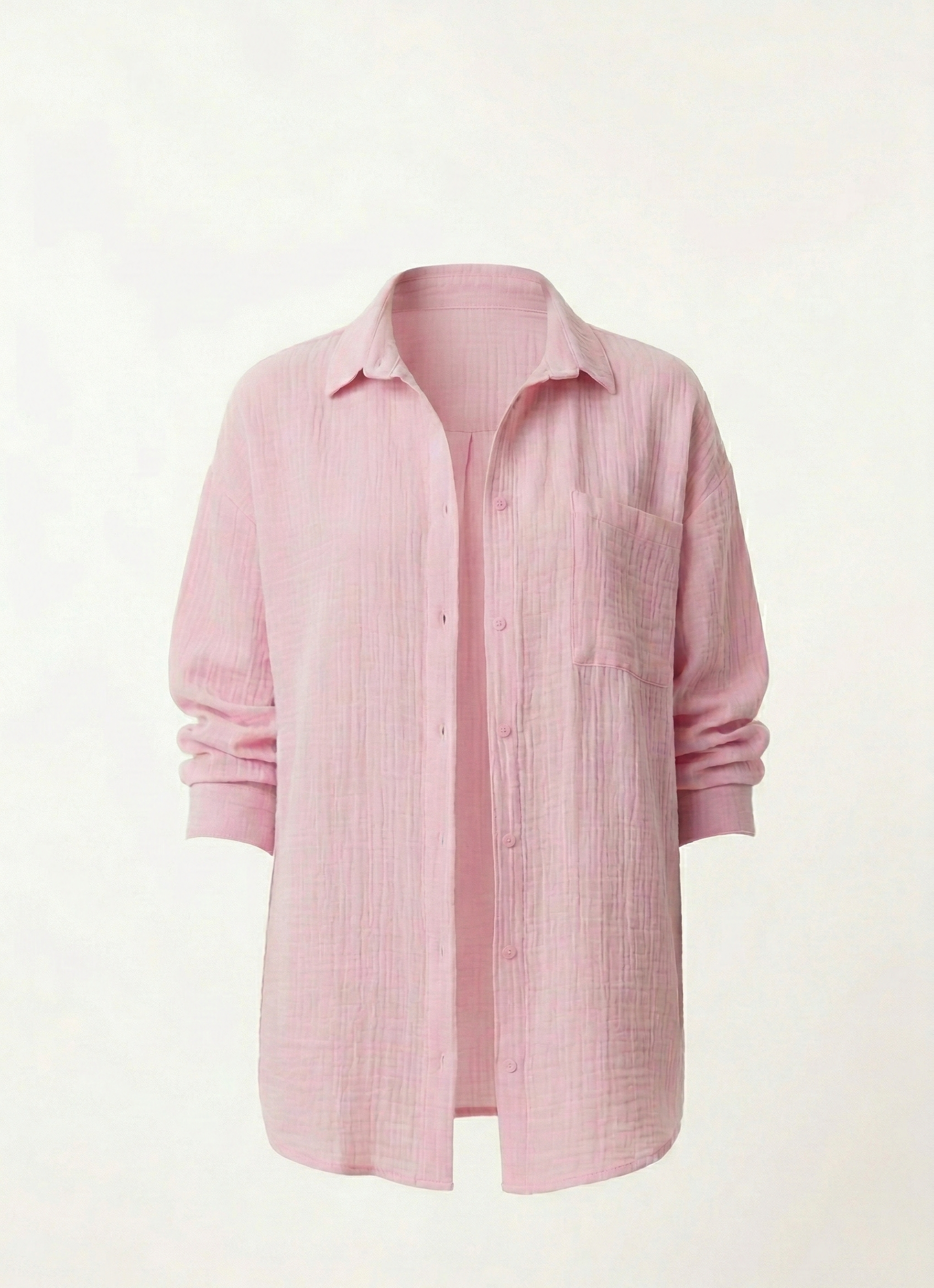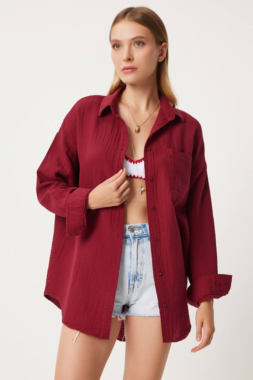 Uzun Kollu Oversize Müslin Kumaş Gömlek